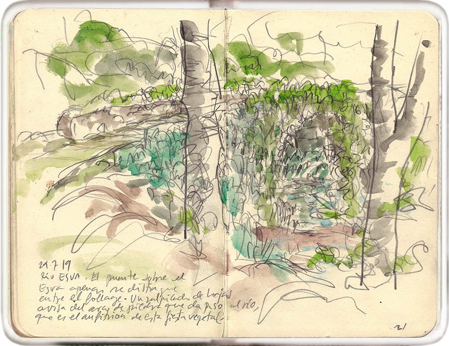 El puente sobre el Esva (Asturias) a penas se distingue del follaje. Un salpicado de hojas avisa del arco de piedra que da paso al río, que es el anfitrión en esta fiesta vegetal.