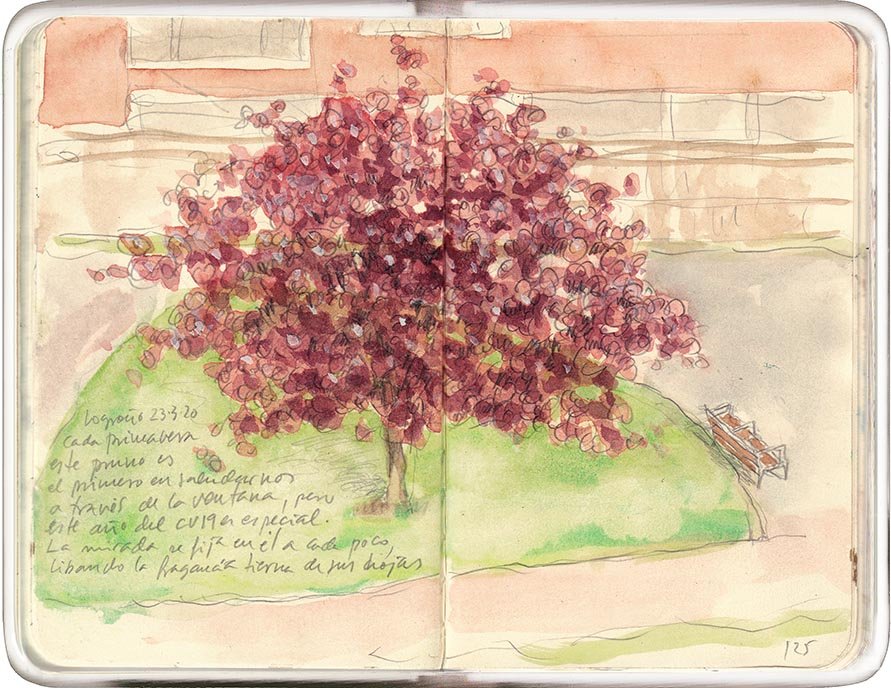 Cada primavera el punto que hay a la ventana es el primero en saludarnos, pero este año el COV19 es especial. La mirada se fija en él a cada poco, libando la fragancia tierna de sus hojas.