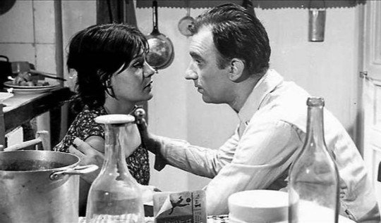 FFG: “Exclusivamente, las vivencias de toda aquella gente como plasmación realista, y con un sarcasmo un tanto interiorizado, de un cierto nivel muy bajo de la gente española de aquellos años – que no son años en los años en lo que los que la película está rodada – de finales de los cuarenta; aquella sordidez, aquella impotencia de la gente. Y la carencia por parte de la gente de este estrato social de una moral auténtica, sino que se ven sometidos a una especie de ductilidad por el imperativo de la vida cotidiana, de esa bajeza de miras… Eso es lo que más me interesaba, el juego de unos personajes con otros bajo ese prisma”