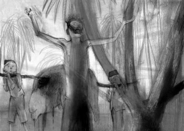 Del relato de la primera lectura de Ian McEwan de la novela de Golding he robado un puñado de líneas, ilustradas por las imágenes de Jorge González. Sus dibujos se oscurecen conforme el desconcierto y el miedo de los protagonistas avanza. “Si uno dibuja lo que se lee me resulta aburrido", dice González. Entonces, ¿cómo ilustrar una novela? Su respuesta está en este vídeo de Canal Lector (aquÍ) en el que explica cómo trabaja. Para saber más sobre este argentino que nació en Venezuela y reside en España os invito a visitar su página web (aquí). Ojalá estas líneas hayan servido para despertar en ti el deseo de leer y tener esta gran edición.