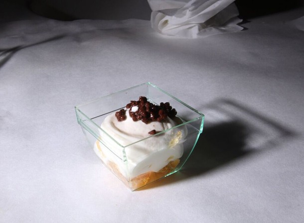 Disfrutamos muchísimo con un tiramisú con gelatina de amaretto y caviar de cacao. Descubrimos que se pueden realizar gelificaciones en frío con agar-agar, un polisacárido que se obtiene de la pared celular de algunas especies de las algas y que presenta histéresis térmica. Esto significa que se disuelve en caliente y gelifica al enfriarse, pero puede volver a calentarse hasta 90° C sin que licue.