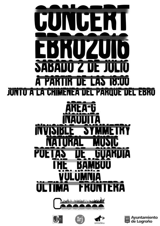 Los grupos que actuarán en Concert Ebro son: ÁREA-G, INAUDITA, INVISIBLE SIMMETRY, NATURAL MUSIC, POETAS DE GUARDIA, THE BAMBOO, VOLUMNIA, y ULTIMA FRONTERA. La entrega de premios se realizará el mismo sábado a las 23:30 horas. Se otorgarán tres premios: el primero consiste en la grabación de una maqueta, valorado en 1.400 euros; el segundo, material musical por valor de 700 euros; y el tercer premio, material musical por valor de 350 euros. Además, Los dos grupos mejor clasificados participarán en el festival Parrilla Rock 2016, que se celebrará durante las próximas fiestas de San Mateo.
