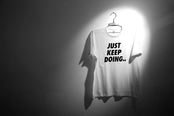 Víctor Hermoso.- Lo primero que ves al entrar son unas reproducciones de un texto de Benjamin Franklin, en la que nos introduce el, como lo llama Max Weber, espíritu capitalista. A continuación un video que funciona como registro de la investigación que hemos llevado a cabo y que, de alguna manera, no hemos querido abandonar pese a que hayamos tenido que reducir el contenido drásticamente por cuestiones de ecología de información. En él, hacemos un breve recorrido por las distintas conformaciones históricas de la ética del trabajo hasta llegar a la actualidad. Actualidad que también está representada por la camiseta Just Keep Doing. Desde el texto de Benjamin al eslogan bastardo de Nike impreso en la camiseta, vemos una trayectoria de esta línea concreta de pensamiento -con sus desvíos y modificaciones-que ha pasado de ser una propuesta intelectual concreta a devenir un mensaje hegemónico y reproducido en todas las capas de nuestra sociedad.