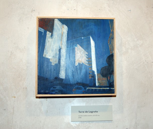La pintura de Toño Vega cobra vida desde el vínculo que contraen luz, sombra y volúmenes. Así, el conjuro de los pinceles y la tela acoge los edificios de las calles Muro de Cervantes, Calvo Sotelo, Once de junio, Santos Ascarza, San Roque, Avenida Colón o Ruavieja; también las torres de Hacienda y de la Gran Vía; las plazas del Moderno o de San Bartolomé, la Chimenea de la antigua Tabacalera, la biblioteca Rafael Azcona o el tramo porticado de Rodríguez Paterna. Los cuadros de Vega son brillos de luz que transmiten emociones. No son tratados de arquitectura, sino punzadas que te recuerdan instantes vividos en esos lugares. “Pintar –señala- tiene sentido tanto en cuanto alegra la vida de las personas que contemplan y disfrutan los cuadros, no cuando los acumula en casa o en el estudio el propio autor”.
