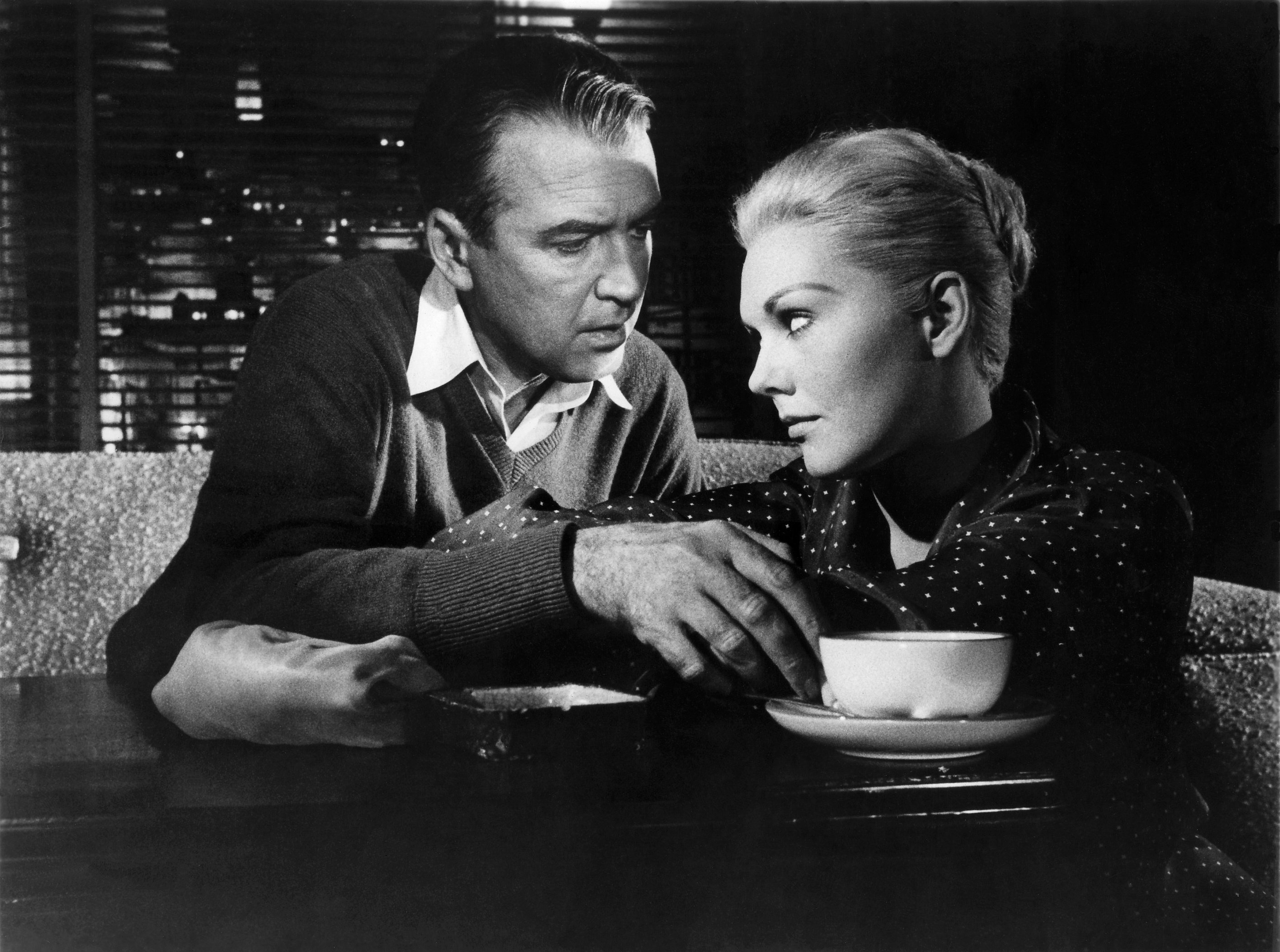 ‘Vértigo’ es suspense –no podía ser de otro modo con la mano de Hitchcock detrás-, algo de cine negro y mucho melodrama con ritmo melancólico. Es la historia de un detective retirado, John ‘Scottie’ Fergusón (James Stewart), tras estar aquejado de vértigo; un diagnóstico que descubre al contemplar como un compañero cae desde una cornisa durante una persecución. Alejado de la acción, un antiguo amigo le contrata para que con la máxima discreción vigile a su esposa, Madeleine Elster (Kim Novak), quien dice estar poseída. En concreto, por el espíritu de su bisabuela, Carlota Valdés. Scottie no puede evitar que Madeleine se suicide arrojándose desde una torre -la que construyeron para la ocasión en la misión española San Juan Bautista de San Francisco-; entonces descubre que estaba enamorado de ella. Hasta aquí el prólogo.