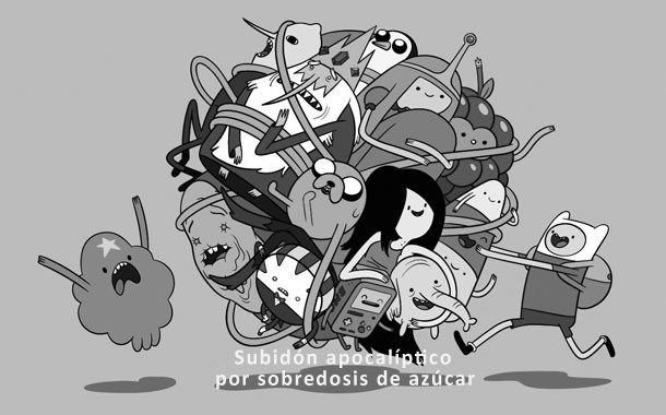 Como –casi- todo en esta serie la secuencia de episodios tampoco podía seguir una pauta predecible, y en vez de tener una línea temporal de historias y peripecias, cada capítulo es independiente. O lo que es lo mismo: no necesitas seguir la serie para engancharte. Con ver uno sólo de sus capítulos te verás sumergido en un universo adictivo en el que la ruptura de todo tipo de expectativas puede asemejarse a la línea de clásicos infantiles tales como ‘Alicia en el País de las Maravillas’ o ‘Donde Viven los Monstruos’ de Maurice Sendak. Es evidente que esta imaginación totalmente desmesurada con un espíritu indie (reflejado a través del grupo madrileño Templeton elegido para doblar su banda sonora) es el resultado de un cúmulo de influencias que se ha ganado a todo tipo de públicos. Desde los más ‘cool’ o ‘hipsters’, pasando por adolescentes, y su público más fiel: los pequeños de la casa. Una generación que todavía no entiende el trasfondo de esta serie iconoclasta que atenta contra los clichés del género, y que ofrece buen rollito ante cualquier adversidad. Un post-apocalipsis que lejos de deprimirte acaba por impregnarte de una explosión de sabor a algodón de azúcar.