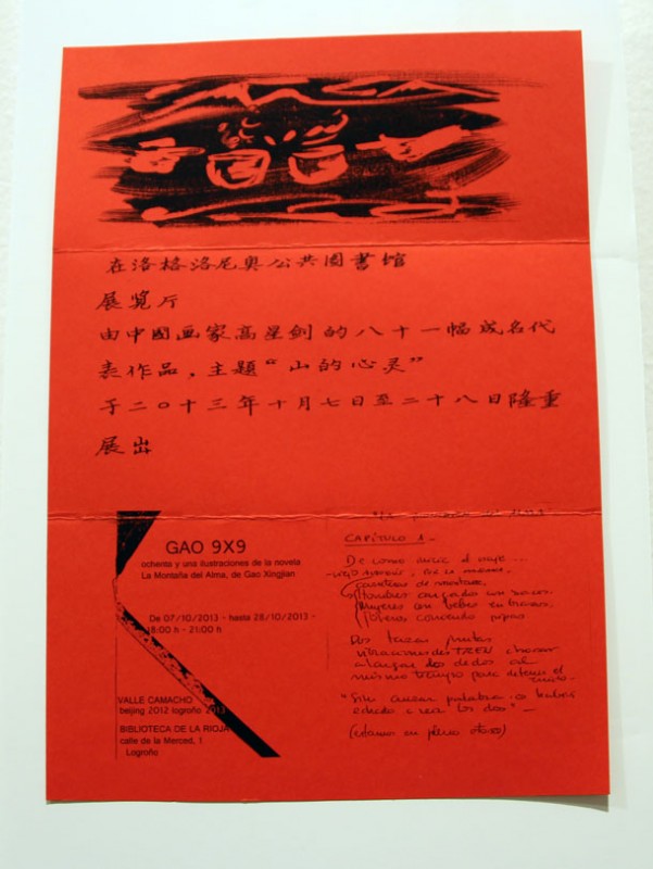 ‘Gao 9x9’ es el resultado de un viaje dentro de un viaje, dentro de una viaje. Quizá un viaje anunciado tiempo atrás. La Sala de Exposiciones de la Biblioteca de La Rioja acoge hasta el 20 de octubre la obra de Valle Camacho inspirada en su estancia en China y en la lectura de ‘La Montaña del Alma’, la novela más importante del premio nobel de Literatura, Gao Xinjian.