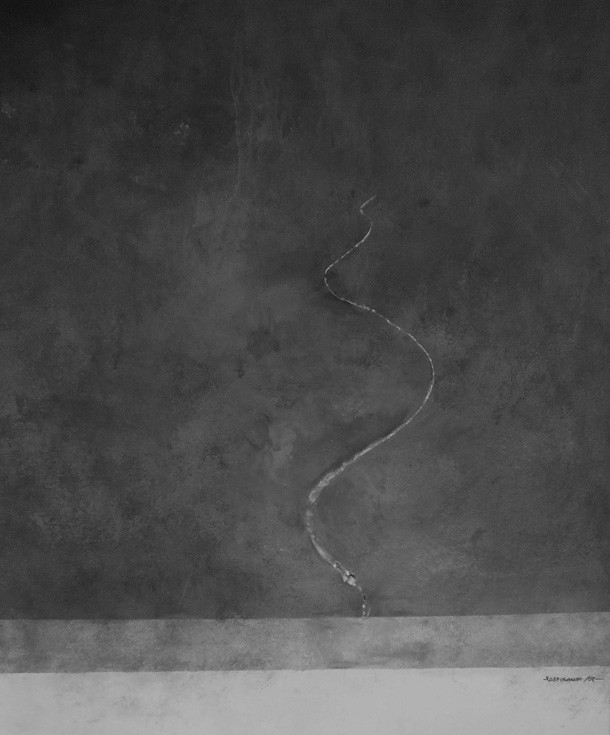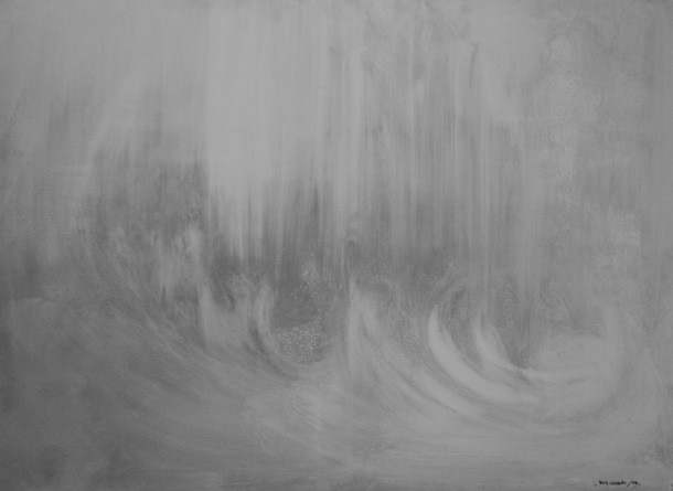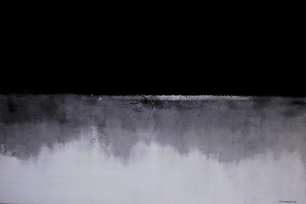 Durante la conversación, Valle nos habló de 'Polaroids' -acrílicos en blanco y negro- inspirada también en la obra de Xijian, 'Después del diluvio', así como de de 'Huida y represión', una obra situada en la caligrafía abstracta, realizadas en tinta china sobre papel y lienzo, su trabajos anteriores.