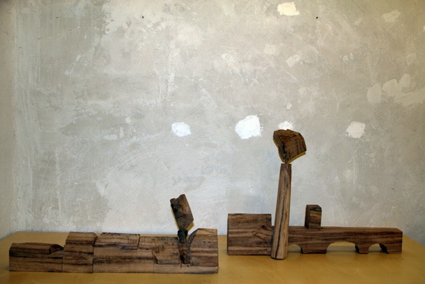 Apuntan los responsables de Planta Baja, Aurora y José Miguel León, que Carlos de Flores “inventa una particular realidad arquitectónica o paisajista, aprovechando lo que le ofrecen las dimensiones y tipos de madera que emplea”. Edificaciones que juegan sobre las sensaciones opuestas de fragilidad y robustez.