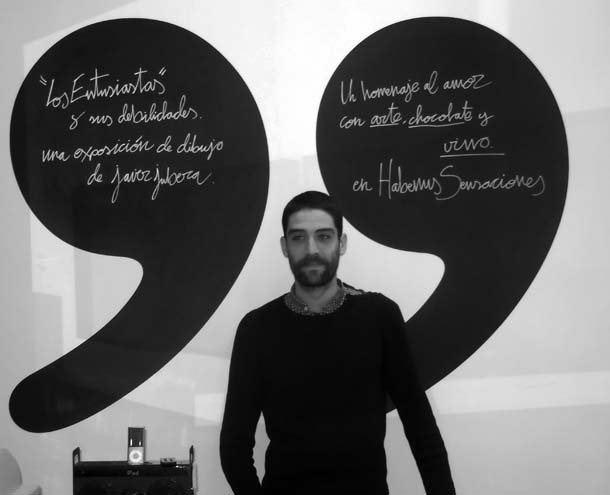Desde Habemus han puesto en marcha un concurso alrededor de los dibujos que componen la exposición ‘Los entusiastas y sus debilidades’. “Se trata –explican Alicia y Eva- de acertar las dos palabras con las que Javier Jubera define su trabajo… ofrecemos hasta diez opciones”. El ganador recibirá un lote de productos Habemus./Javi Muro