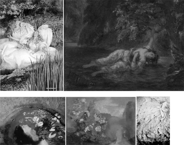 [2] Este mito opheliano se configura de acuerdo a su representación continuada en la Historia del Arte y mitificación de la figura de Ophelia por parte de artistas y hermandades artísticas como los prerrafaelitas.