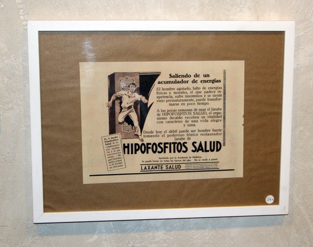 En aquellos años 20 además de los cigarros y de los coches exclusivos, la exposición recuerda aguas naturales purgantes, depurativas, antiartríticas y antiherpéticas, como ‘Peñagallo’; jabones ‘Pear’s’ y ‘Heno de Pravia’; lociones para evitar la caída del cabello, tales como ‘Petróleo GAL’; dientes blancos ‘Chlorodont’; ‘Hipofosfitos Salud’, “para el hombre agotado, vitalidad y energía en jarabe”; o recursos contra la impotencia antecesores de la Viagra como las píldoras ‘Herial’, “cura infalible”, aseguraba la inserción publicitaria.