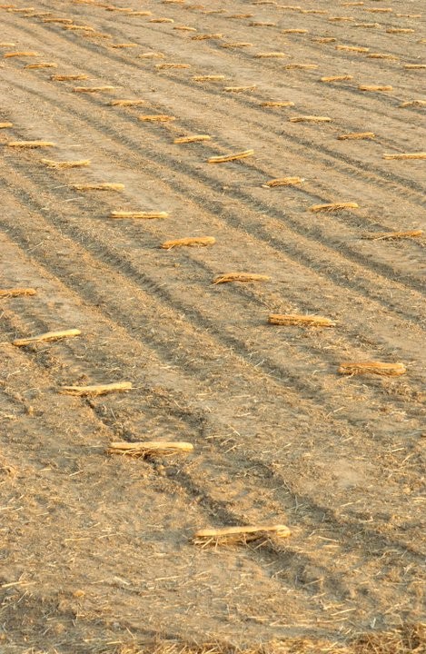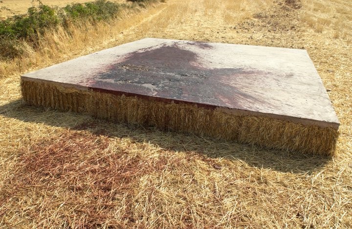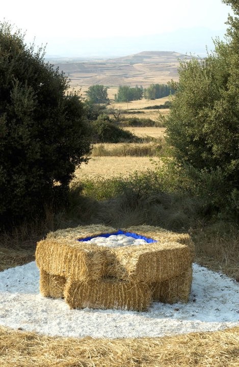 En la carretera, a tan sólo unos metros, Carlos Rosales camina hacia una finca que parece recién arada. Alrededor, los terrenos aún mantienen una tupida manta de espigas de trigo. Este año el cereal ha llegado tardío y no ha dado tiempo de segar. “Para mí –explica- era importante volver al mismo sitio diez años después y poder reflexionar sobre qué ha pasado conmigo y con el lugar”. En aquel 2003, en su proceso de búsqueda creativa, Carlos Rosales constató como el sol entraba al fondo y se reflejaba en una pequeña colina situada enfrente. Ese juego de luz y esa línea imaginaria creada fueron moldeando aquella colina hasta identificarla con un altar y dando cuerpo a la que sería su obra en aquel primer ‘Arte en la tierra’, ‘ARA’. “Me ayudó mucho –explica- una frase que dice algo así como ‘esta colina era su altar y el mundo su templo’”.