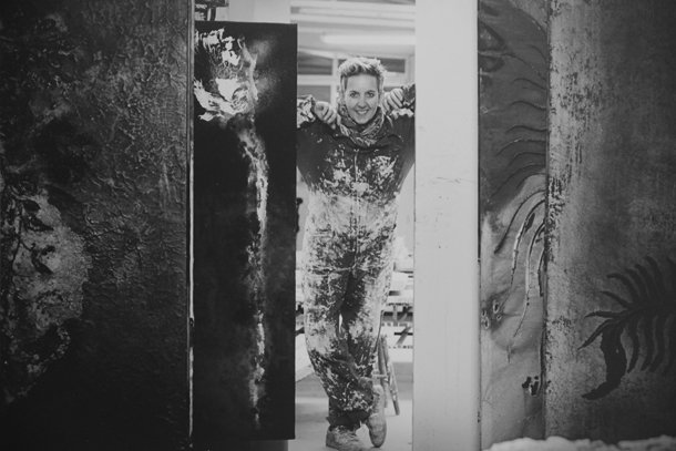 La madre de la artista mira orgullosa la muestra desde el centro de la Sala. “Amaba tanto su trabajo –recuerda-, quién la conocía verá en la exposición a Lucía”. Sensaciones y simbolismos envolventes y seductores. Ruge Mistral./Javi Muro