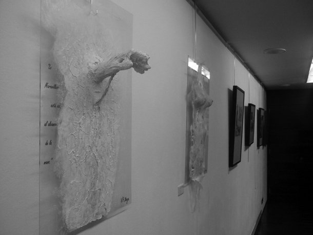 “El cuerpo humano no es más que apariencia y trasciende a nuestra realidad”. La idea se entrelazada entre los elementos que dan forma –y casi vida- a una de las pinturas/esculturas o esculturas/pinturas expuestas en la Sala. Belén y Vanessa son madre e hija. Además, pintan y crean obra gráfica sobre diferentes soportes. La muestra de su trabajo que acoge el Centro Caja Rioja-Bankia Gran Vía de Logroño cuenta además un relato de superación y aliento a través del arte.