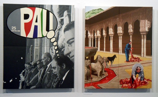 La apropiación de imágenes ajenas para alterarlas, reformarlas y construir mensajes nuevos discordantes con los originales forma parte de la esencia clave para entender el estilo artístico de Carmelo Hernando. El montaje de imágenes, ya sea a través de la fotografía, el vídeo, la pintura o cualquier otra técnica que pueda imaginarse, fue uno de los recursos de las vanguardias de principios del siglo XX, explica Carlos Traspaderne en el prólogo del catálogo editado para ‘Un Canon’. “Su furioso mensaje combinaba a la perfección con la agudeza e inmediatez del fotomontaje –apunta- y Carmelo Hernando bebe de esas tendencias, mezclándolas y destilándolas dentro del nuevo contexto de la postmodernidad”.