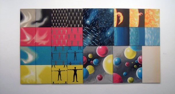 Los lienzos de Hernando obligan a ser observados con calma, invitan a desentrañar sus significados, y contagian el deseo de descubrir el mensaje a través de los detalles. Arte Pop con claves a descifrar. Es el compendio de ‘Un Canon’... "paradójico, blanquinegro, colorido, hogareño, cronometrado, horrorizado, cerebral, infantil, mecánico, agradecido, español, jarrero y animal". Quizá sea por la vivacidad de los colores pero al abandonar la Sala, la mirada intensa de 'Rei Floc' aún te acompaña mientras atraviesa la puerta camino de la calle. /Javi Muro