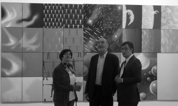 Junto a Carmelo Hernando caminan entre los cuadros del pintor jarreo la concejala de Cultura del Ayuntamiento de Logroño, Pilar Montes, y el director general de Cultura del Gobierno de La Rioja, José Luis Pérez Pastor. Ambas instituciones promueven ‘Cultural Rioja’, la entidad que organiza la muestra. Montes destaca la oportunidad que supone poder “contemplar, por vez primera, en conjunto la obra de Hernando”. Una panorámica que resume nada más y nada menos que cuarenta y un años de trabajo. Pérez Pastor incita al artista a hablar del arte Pop, y también de los detalles Punks –recuperados por diseñadores y creadores en 2013-, y sobre las reflexiones que recoge su pintura.