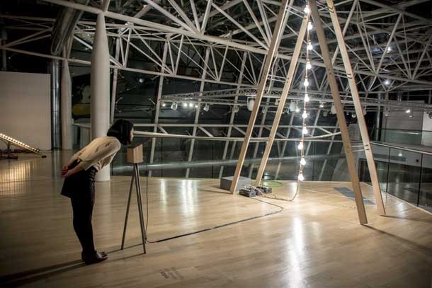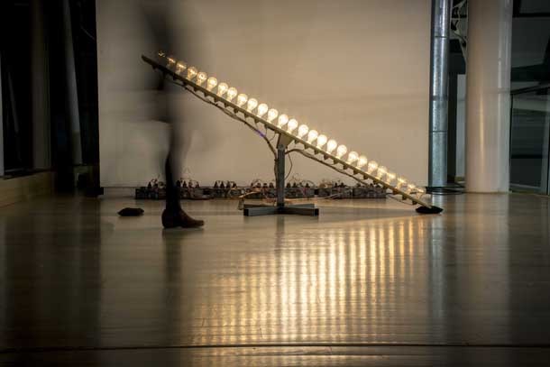 "En las tres instalaciones –describe el dossier-, los artistas juegan con los visitantes y necesitan de su participación para dotar a la luz de propiedades que no encontramos de manera natural. El trabajo de Espadaysantacruz se vincula con el arte cinético, el lenguaje de programación y las plataformas de hardware libre, pero sobre todo con la materialización de la poética de la luz“.