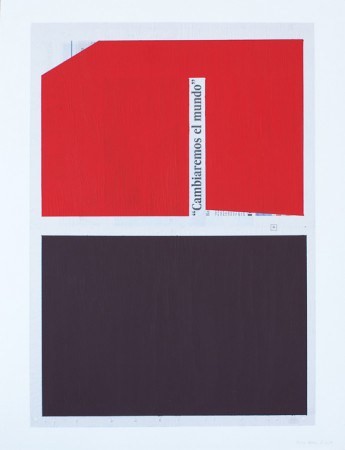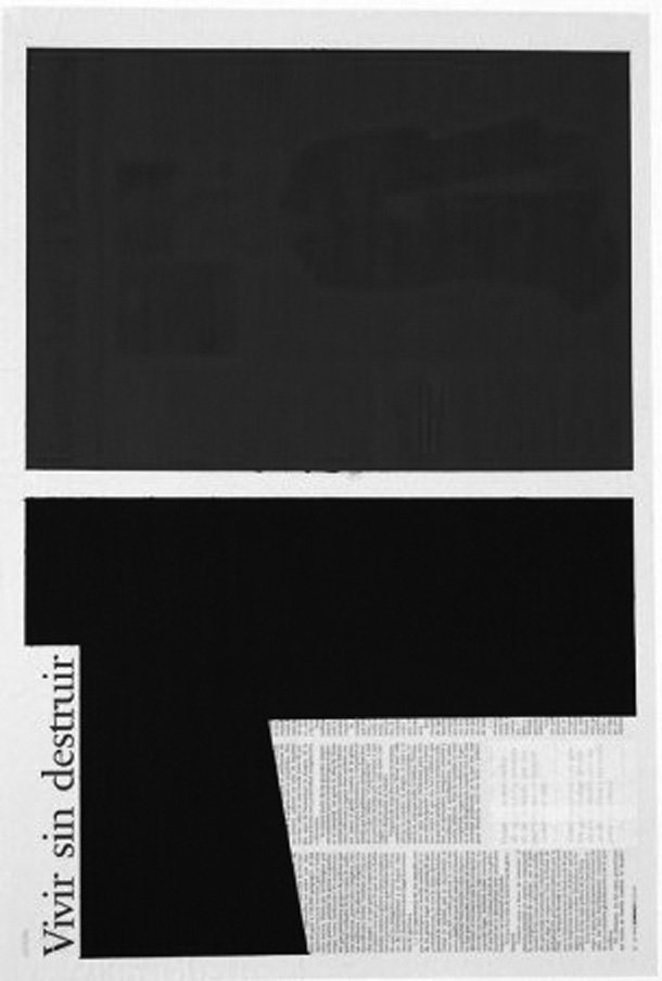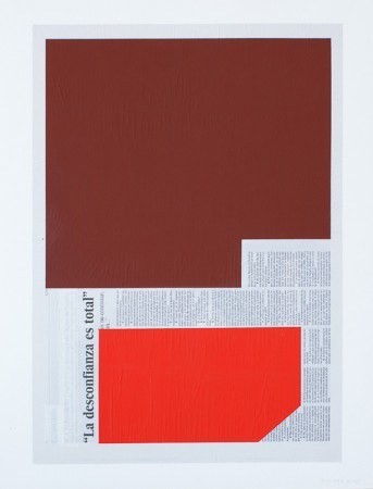 Otros artistas también trabajan con el texto informativo ocultando unas partes y reservando otras, como Pello Irazu (España, 1963) en sus trabajos ‘Vivir sin destruir’, ‘La desconfianza es total’ y ‘Cambiaremos el mundo’, todos de 2009. El artista selecciona una frase con efecto, bien sea el titular de la noticia, la bajada o una frase destacada, y la reserva de tal modo que el resto de la hoja queda cubierto por manchas de color propias de la abstracción geométrica enfatizando esa frase que da título a la pieza.