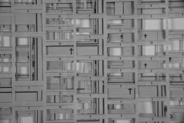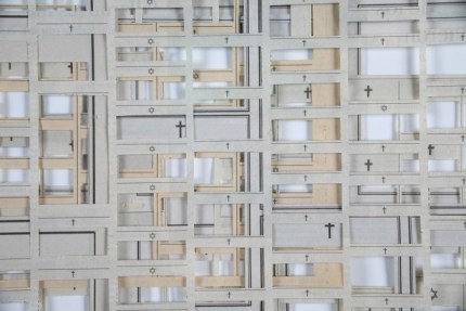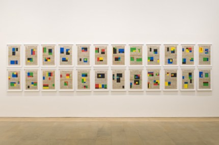 Jorge Macchi (Argentina, 1963) también trabaja con las esquelas en ‘Monoblock’ (2003) aunque de un modo muy diferente al anterior. El artista argentino toma páginas enteras de obituarios y vas vacía, recortando los recuadros texto donde aparecen los nombres de los difuntos y sus familiares. Macchi trabaja con la potencia poética que reside en el acto de sustraer el texto de las hojas impresas, de modo de dejar en éstas una profunda ausencia que adquiere más sentido tratándose de nombres de fallecidos.
