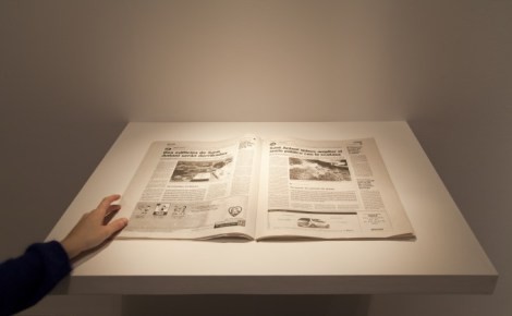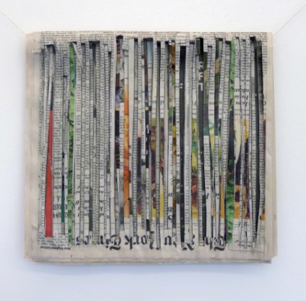 Tobías Putrih (Eslovenia, 1972) en ‘Marzo 20’ y ‘Abril 12’, ambas de 2011, toma diarios completos y los transforma a través de una serie de cortes que dejan ver todas las capas de la publicación creando una interesante obra quasi-escultórica. Los títulos corresponden al día en el que el periódico fue publicado.