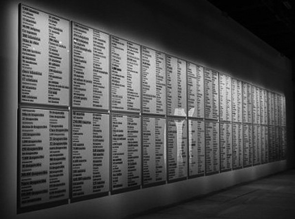 En esa selección de frases, de fragmentos de texto, destaca la obra de Ignasi Aballí (España, 1958) quien con pequeños recortes realizados sobre periódicos realiza taxonomías sobre la naturaleza semántica de esas palabras. Ejemplos de esto son: ‘Listado (drogas)’, de 2007, ‘Listado (idiomas)’, ‘Listado (errores)’, ambas de 2008, ‘Listado (invisible)’ y ‘Listado (pintores)’, de 2011.