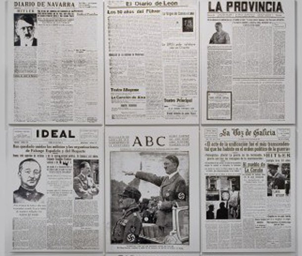 En este sentido el Colectivo Democracia trabajó en su pieza ’20 de abril’ (2010-2012) un proyecto consiste en un archivo que recoge distintas cabeceras periodísticas españolas que durante finales de los años treinta y comienzos de los cuarenta celebraron en su portada el cumpleaños de Hitler. Con este material se realizó una edición facsímil del periódico Baleares del 21 de abril de 1942, que se publicó encartada en el dBalears (su actual nombre) del 21 de abril de 2010, que recogía en su portada la celebración del cumpleaños de Hitler.