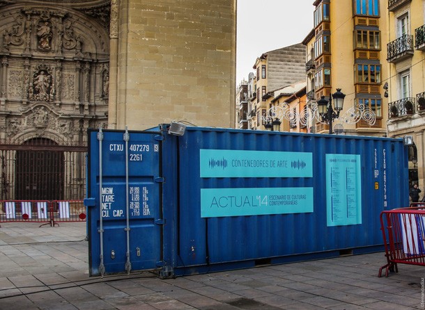 Allí, de sopetón, se tropezará con siete contenedores marítimos en aparente fuera de lugar. Sí, de esos que en las películas –y en la vida real también- sirven para el transporte de armas, drogas, tráfico de personas o coches de contrabando. Suelen mostrarse apilados y combinando llamativos colores sobre la cubierta de grandes buques o en la zona de estibación de los puertos. Aquí, en la céntrica plaza logroñesa, se muestran azules, un tanto despistados, pero enormemente enigmáticos y, según quienes ya los han visitado, la sustancia que almacenan –ilegal o no- se conoce como intensidad.