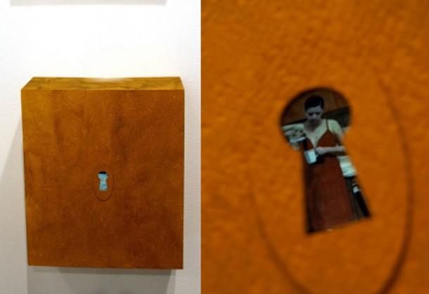 La segunda pieza la conocí en ARCO en 2011. La artista polaca Klara Petra Szabo presentó la pieza 'The only thing standing in between you and me is reality' (2010). Se trata de una caja cerrada cuyo interior sólo puede verse a través de una pequeña cerradura. El espectador ha de acercarse y mirar a través de ella para descubrir una escena de una mujer haciéndose el desayuno en camisón. Una irrupción totalmente voyeur en la intimidad y en el ámbito privado de la observada.