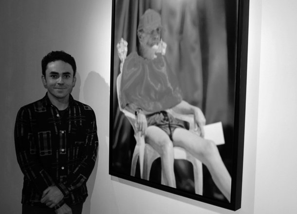 La fotografía digital que Ignacio Beltrán ha presentado al certamen juega con las referencias pictóricas de la obra de Velázquez del mismo título. “Me gusta –describe- jugar con la idea de los actores forzados a los que meto en el papel de diferentes personajes”. En esta ocasión el actor involuntario es su abuelo sorprendido sentado en una silla junto a la piscina de la finca familiar. "Es imagen inicial realizada con el móvil –explica- voy transformándolo hasta construir el personaje. En ‘Inocencio X’ la transformación ha tenido que ver, por ejemplo, con las telas, los detalles de la silla o el color dorado”. Resulta inevitable preguntar al artista por cómo se lo ha tomado su abuelo. “Lo lleva muy bien –asegura mientras se ríe- está encantado”. El joven artista apunta que suele emplear escenas familiares para llevar a cabo su proceso creativo. “Son imágenes que luego adapto”.
