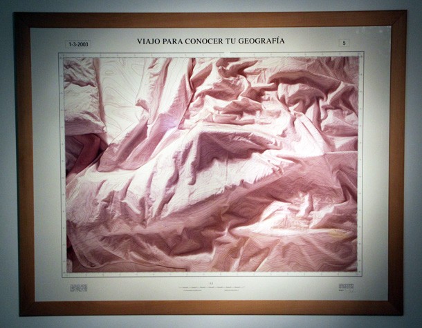 Nada más descender la escalinata que conduce al sótano, una escalera de mano que apunta hacia el ventanal situado a cota cero parece darte un opción de escape, una alternativa, es una alerta en forma de instalación artística que te alerta sobre la necesidad de activar tu mirada al contemplar una obra de arte. Ya dentro de la Sala, las sábanas, los mapas y las curvas de nivel se entrelazan en la obra de Mateo Maté al tiempo que el artista recita su intención de viajar para “conocer tu geografía”. La propuesta de Maté es uno de los 29 trabajos que acoge la nueva sala de exposiciones del Ayuntamiento de Logroño, que situada en el sótano quizá amplía la ya existente o quizá descubre un espacio nuevo para el arte en la ciudad. Sea como sea, la cultura gana.
