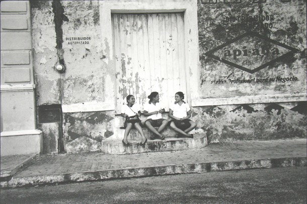 Esa joven y su rostro de otro tiempo, que alza los ojos hacia el cielo, como trazando una línea invisible hacia otro lugar, nos devuelve a una suerte de trilogía, de trinidad. El interior de una capilla, bañada por esa luz lechosa típica de los países nórdicos, invadida por un denso silencio, que se estremece en ese mismo instante por la discreta presencia de un individuo, sentado al fondo, solo. Es el eco de Muchacha leyendo una carta de Johannes Vermeer (1657). O también como los dos niños suspendidos en una barrera, balanceándose como notas musicales que tararean sobre una partitura. Los blancos y negros están en equilibrio. Todo está ahí.