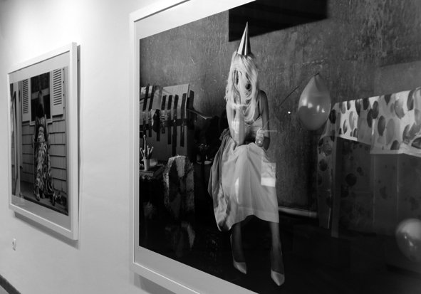Aprovechando la doble actividad (Arte y diseño) de LA FAKE, dentro de Actual 2018, Irene Aparici dirigirá el día 4 de enero (18 horas) un taller en las instalaciones de la Casa de la Imagen. La autora reproducirá el método de trabajo empleado en las imágenes de la exposición, con actores, estilismo y decoración. Los alumnos -interiorismo, fotografía, arte y diseño- podrán tomar fotografías y participar en las decisiones creativas. Desde una de las fotografías de 'Galáctica' una mujer con el pelo afro rubio parace observar al visitante a través de los rizos mientras abandona la sala. LLeva la americana abierta y muestras la prótesis de unos pechos. Quizá ni siquiera está allí, quizá ni siquiera es una mujer. Ya sabéis... "las lechuzas no son lo que parecen"./Javi Muro