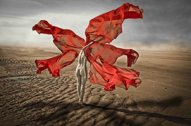 Pues imagino mis fotos en base a mi vida y el contexto histórico que me ha tocado vivir. Por ejemplo, lo que sucede en mi país o determinados acontecimientos en Europa o alrededores me afectan. La imagen aparece en mi cabeza como un relámpago. Supongo que la misma fotografía me las dicta.S.- … en alguna ocasión también improvisas. Junto a una de tus fotografías he leído algo así como “…conocí el café ‘Las Horas’ en Valencia, un lugar extraordinario, Bebimos vino, nos desnudamos y realizamos la fotografía…"