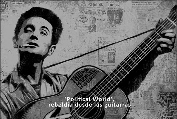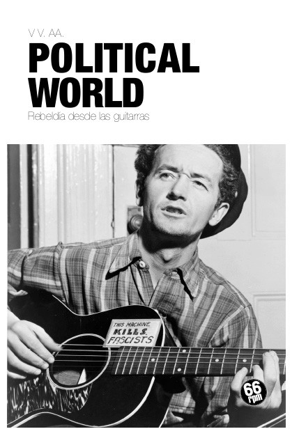 Los amigos de la siempre recomendable editorial 66 rpm publicaron a finales del año pasado un volumen colectivo con el explítico título de Political World, que alude a la canción de Bob Dylan de su disco de 1989 Oh! Mercy, y con el subtítulo de Rebeldía desde las guitarras. En la portada, otra imagen icónica, en esta ocasión la de Woody Guthrie y su guitarra con la famosa pegatina ‘This Machine Kills Fascists’. Obra colectiva donde se recogen 123 canciones, en ella participan algunas de las mejoras plumas del periodismo musical: Alfred Crespo, Carlos Rego, Carlos Zanón, Eduardo Izquierdo, Eloy Pérez, Eduardo Ranedo, Fernando Navarro, Manuel Celeiro, Manuel Beteta, Toni Castarnedo y Xavier Valiño. Una alineación que nos remite al imprescindible Ruta 66 y que se completa con un prólogo a cargo de Hendrik Röver (Los Deltonos), ‘Cuando el rock tenía un rol’, y una ‘Introducción (o como lo queráis llamar)’ que realiza Esteban Hernández. Como podemos observar, los mimbres eran prácticamente inmejorables para abordar una cuestión tan espinosa, y controvertida, como la relación entre el Rock & Roll, y sus derivados, con la política. Pero el riesgo no sólo estaba en el ya difícil objeto del libro sino en otros aspectos como la selección de temas, recordemos que 123, y también el no caer en un volumen de tipo enciclopédico, algo que puede ocurrir, y de hecho pasa, con obras de estas características. Pero todas las cuestiones se resuelven favorablemente. Primero, porque se demuestra esa función de la música, y del Rock & Roll en particular, mostrando sus luces y sombras. Segundo, porque la selección es acertada y, aunque puedan faltar canciones, ninguna sobra y tampoco se caen en muchas ocasiones en las más tópicas y manidas. Y, en tercer lugar, el ritmo no se rompe en ningún momento, al contrario. Las canciones elegidas se van complementando sin problema, los autores se centran no sólo en la canción y los artistas y bandas sino en su contexto, y ahí está una de las claves. Muchas veces de forma no querida, o con una chispa que se enciende, las canciones que surgen de unas situaciones determinadas regresan a la sociedad y pueden agitar conciencias, otra cuestión es si el Rock & Roll sigue cumpliendo ese rol que indica Hendrik Röver en un mundo donde esta música ha pasado a un segundo plano.