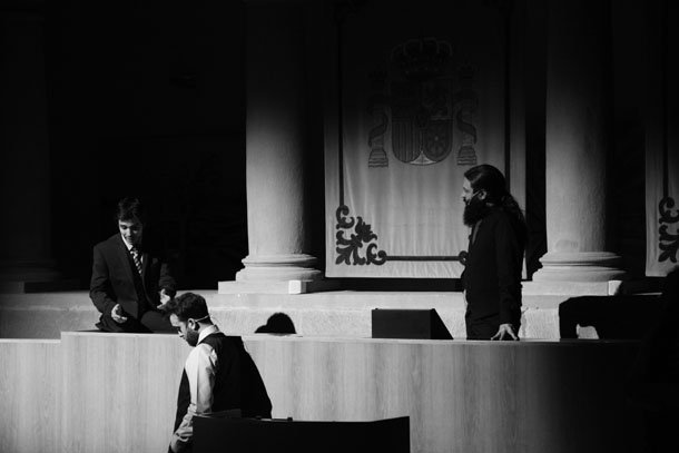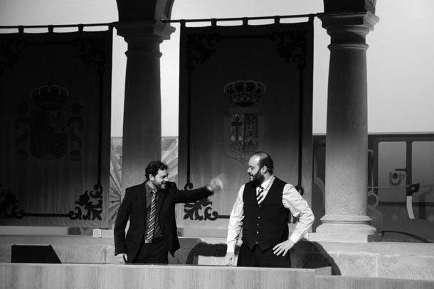 Allí donde hoy en día más se escuchan argumentarios enviados por correo electrónico y discursos manufacturados, el teatro regaló en Actual 2017 un extraordinario ejercicio de improvisación. El hemiciclo del Parlamento de La Rioja se transformó en un fabuloso escenario. Las columnas y los arcos de medio punto que recorren el claustro del antiguo Convento de La Merced envolvieron de magia la puesta en escena de ‘CAOS’, la obra que la compañía Ipso Facto Impro representó dentro de los ‘Escenarios Insólitos’ del festival logroñés.
