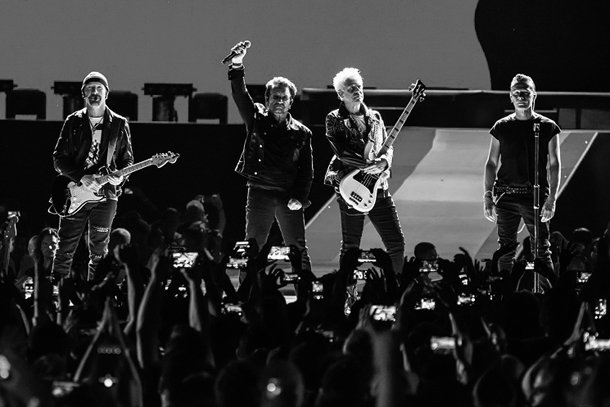 Pero la noche continuó con su línea temporal y algunos de sus éxitos post-The Joshua Tree sonaron en los bises. Tras Miss Sarajevo, abierta con un directo y esclarecedor mensaje de una adolescente refugiada siria, retomarían el poder de las guitarras con tres trallazos consecutivos como son Beautiful Day, Elevation y Vertigo. Les sucedieron dos canciones de ‘Achtung Baby’, una Ultraviolet (Light My Way) dedicada a las mujeres y una inexcusable One como cierre antes de regalar un adelanto de su próximo disco, The Little Things That Give You Away, en la línea de sus últimas producciones.