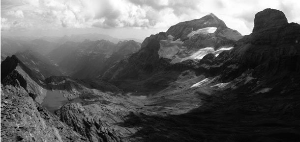 El camino –ya apenas dibujado sobre la roca- atraviesa un barranco y comienza a empinarse y zigzaguear. Las zetas que dibuja la senda te sitúan cuatro horas después de haber comenzado a andar en la terraza del Balcón de Pineta. Ahí, las vistas ofrecen uno de los más espectaculares miradores de todo el Pirineo. Desde sus 2.350 metros y junto a la pequeña cruz de hierro es posible contemplar la belleza del valle y del circo de Pineta.