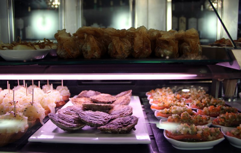 La ventaja y, al mismo tiempo, el inconveniente de elaborar un número tan elevado de pinchos es que trabajas con un número de materias primas muy grande. Si haces un pincho de choricillo hay pocas opciones, pero, por ejemplo, uno de los pinchos nuevos conjuga champiñón relleno de changurrio, gambas y jamón ibérico. Disponer de tantos ingredientes te permiten jugar y preparar muchos pinchos distintos.