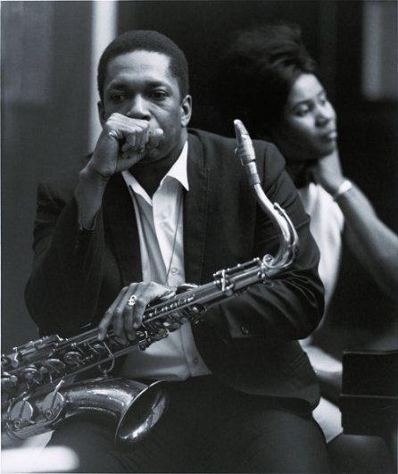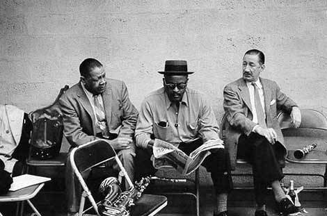 * Pd.: La primera fotografía es un retrato de John Coltrane, pensando en mitad de una grabación, con su esposa Alice al fondo. Me gusta mucho, aunque no he logrado descubrir quién es su autor. La última es un retrato de Milt J. Hinton. De izquierda a derecha: Red Allen, Ben Webster y Pee Wee Russell, una imagen que sirve a Dyer para explicar cómo ha escrito sus relatos a partir de instantes como éste: “oímos a Ben pasando las páginas del periódico y el roce de la tela cuando Pee Wee cruza las piernas (…) las mejores fotografías parecen prolongarse más allá del momento que describen, lo que acaba de decirse, lo que estaba a punto de decirse“.