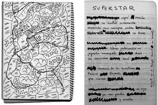 Las palabras de este texto brillan en uno de los paneles que jalonan ‘Archivo Bolaño 1977-2003’. La exposición se acerca a la vida corta, demasiado corta, del escritor chileno a través de autorretratos de fotomatón, retratos de grupo con amigos escritores, la chapa que llevaba en el camping ‘Estrella de Mar’ de Castelldefels – donde trabajó como vigilante nocturno -, viejos libros y juegos de estrategia y, sobre todo, decenas de cuadernos. En total, cuatro novelas, una veintena de cuentos y decenas de poemas inéditos que cabrían sin problemas en un lápiz de memoria minúsculo y anodino, pero que se conservan en folios mecanografiados y cuadernos de lomo de alambre y páginas cuadriculadas, apuradas hasta los márgenes por una letra menuda que parece escrita con un boli Bic. Documentos de un tiempo predigital.
