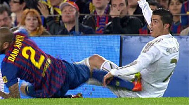 Por empezar como todos, nos situamos a las 20 horas del pasado sábado en Barcelona. La historia reciente cambió de rumbo y con ella la intrahistoria. El Real Madrid se llevó los tres puntos, lo que le sitúa a un paso del alirón final. Pero como en los últimos años, los tacos (de las botas) afloraron, en un caso aislado, más allá del césped. En ediciones pasadas se pudieron observar en primer plano los de Pepe, con un espectador de lujo llamado Mesi. El pasado fin de semana fue Alves, quien ya apuntaba maneras desde hacía tiempo, quien sintió celos del central blanco y emuló sus devaneos mentales apuntando con sus tacos directamente a la tableta corporal de Ronaldo. Dicho de otro modo, no todos saben perder como supo Xavi. Y lo que es más duro aun. No todos saben ganar. Recuérdese la manita de Piqué en el Bernabéu, la desesperada patada de Ramos a Mesi, el altavoz de Mou, las actuaciones teatrales de Busquets… o el ya mentado plantillazo de Alves. La intrahistoria así vista esboza también cierto componente traductor, clarificador. Atiza el que pierde. Mientras tanto, la historia sólo recordará la victoria del Madrid tras años de hegemonía culé.