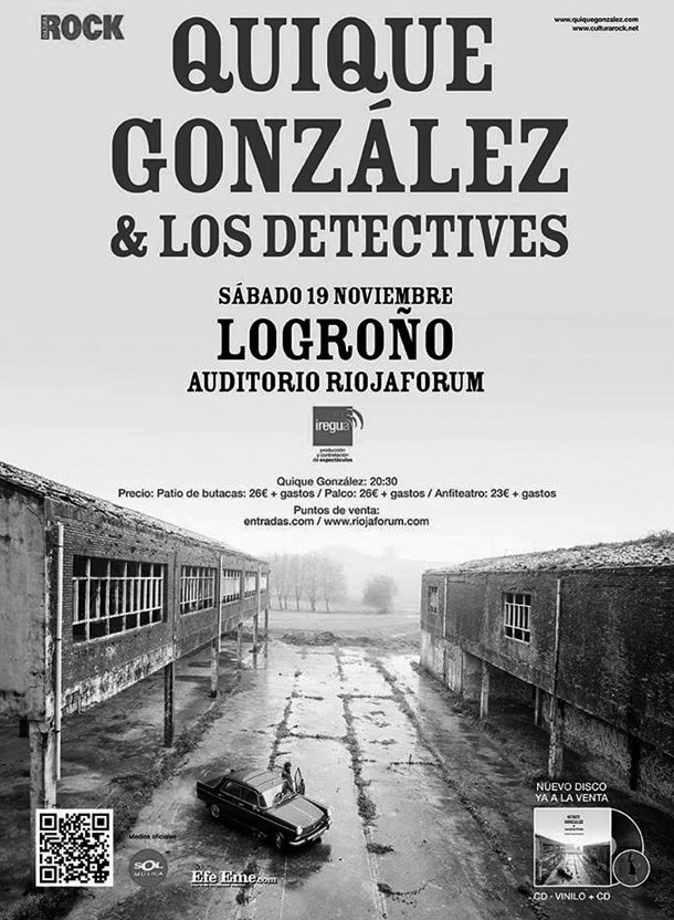 Hay muchas ocasiones en las que, ante un disco, un libro, una película o un concierto, las expectativas están muy arriba. Muchas veces, ese listón provoca que el resultado sea menor del esperado, ‘no era para tanto’ o ‘ menuda decepción’ pueden ser algunas de las consecuencias. En otras ocasiones, esas altísimas expectativas se ven ampliamente superadas, y mira que es difícil, y eso es lo que nos ocurrió con el concierto de Quique González y Los Detectives en Riojaforum el sábado 19 de noviembre. A la salida del mismo, tras dos horas y cuarto de un recital al que le puedo poner todos los calificativos que quiera que me quedaré corto, Javi Castro y yo señalábamos que estaba entre los mejores conciertos que habíamos visto en los últimos años, y llevamos unos cuantos a nuestras espaldas. Hacía tiempo que no salía de un concierto en semejante estado, entre la emoción que afloró en no pocas canciones y la excitación eléctrica de lo que se acababa de vivir. Hacía mucho tiempo que el madrileño y cántabro de adopción Quique González no se pasaba por tierras riojanas, como él se encargó de recordar, creo que desde la gira de Daiquiri Blues (2009), aunque uno rememora aquella fría noche en el Palacio de los Deportes (semivacío) en Actual 2008 donde presentaba su Avería y Redención (2007). Desde entonces, Quique González ha publicado dos cimas en su carrera, Delantera mítica (2013) y Me mata si me necesitas (2016), dos discos en los que hay una evolución continua, asentando una personalidad que ya estaba muy presente en el clásico Salitre 48 (2001) o en el no menos reconocido Kamikazes enamorados (2003). Nueve discos de estudio que dan para un cancionero que ha crecido sin paliativos, giras triunfantes incluida la realizada con José Ignacio Lapido (091) y la sensación todavía presente de que Quique González no ha alcanzado el estatus que merece como uno de los artistas más representativos de nuestro país, constatada cuando hablaba con gente la semana antes de ir al concierto y me señalaban que no sabían quién era. Con la clara influencia de los sonidos de raíces norteamericanas, González está al mismo nivel que Antonio Vega, Enrique Urquijo o el propio Lapido. En fin, cosas que pasan.